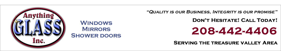 Anything Glass, Inc. offers you unmatched customer service, fast turn-around, high end installation, custom sizing, and a huge selection of products. Anything Glass, Inc. replaces glass in both Residential and Commercial applications in the Treasure Valley area. Our professional office staff are available to take your calls Monday thru Friday from 8:00AM to 5:00PM each day. We welcome insurance claims. We've built a local reputation for honesty, efficiency and affordable prices so give us a call to make the glass repairs you need today. Anything Glass, Inc.'s Products and Services Include: Glass "products" for all your Glass "projects" Residential and Commercial windows and glass repaired or replaced. New Windows, Shower Doors, Mirrors, etc... Installation for all your glass purchases. Our secret to success has been a combination of: